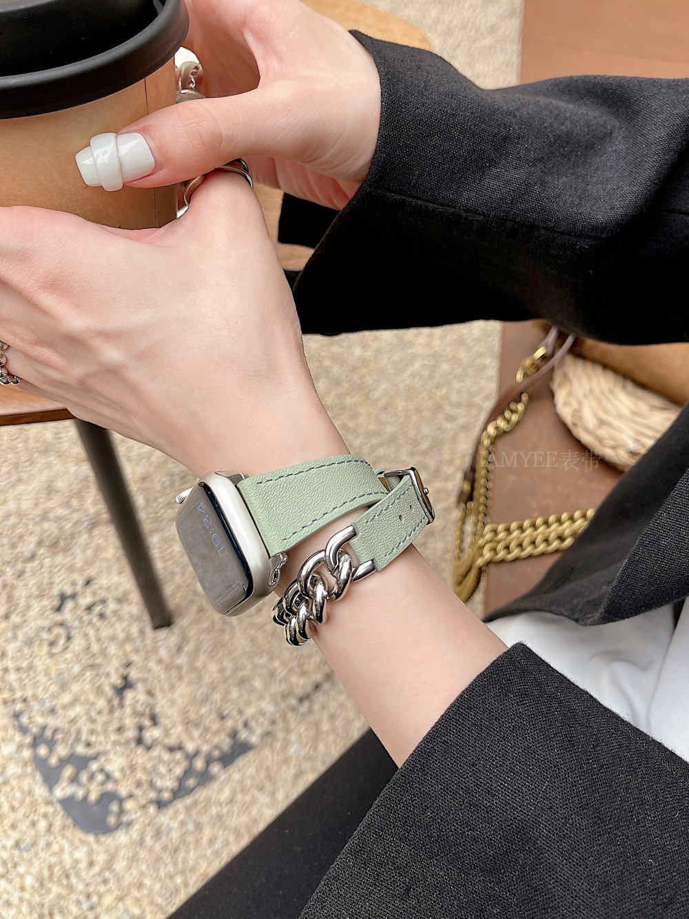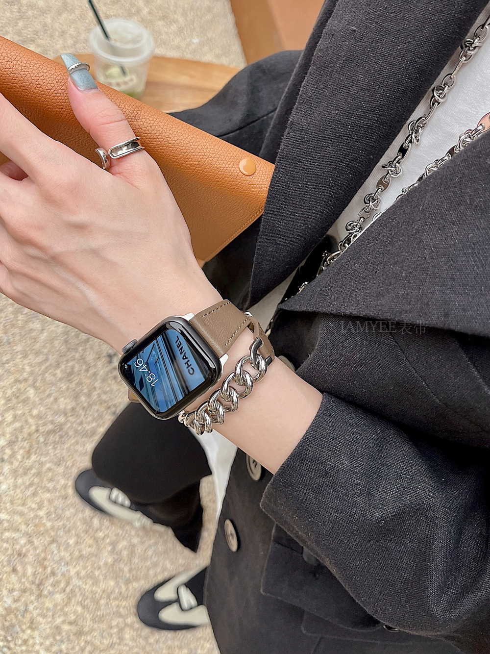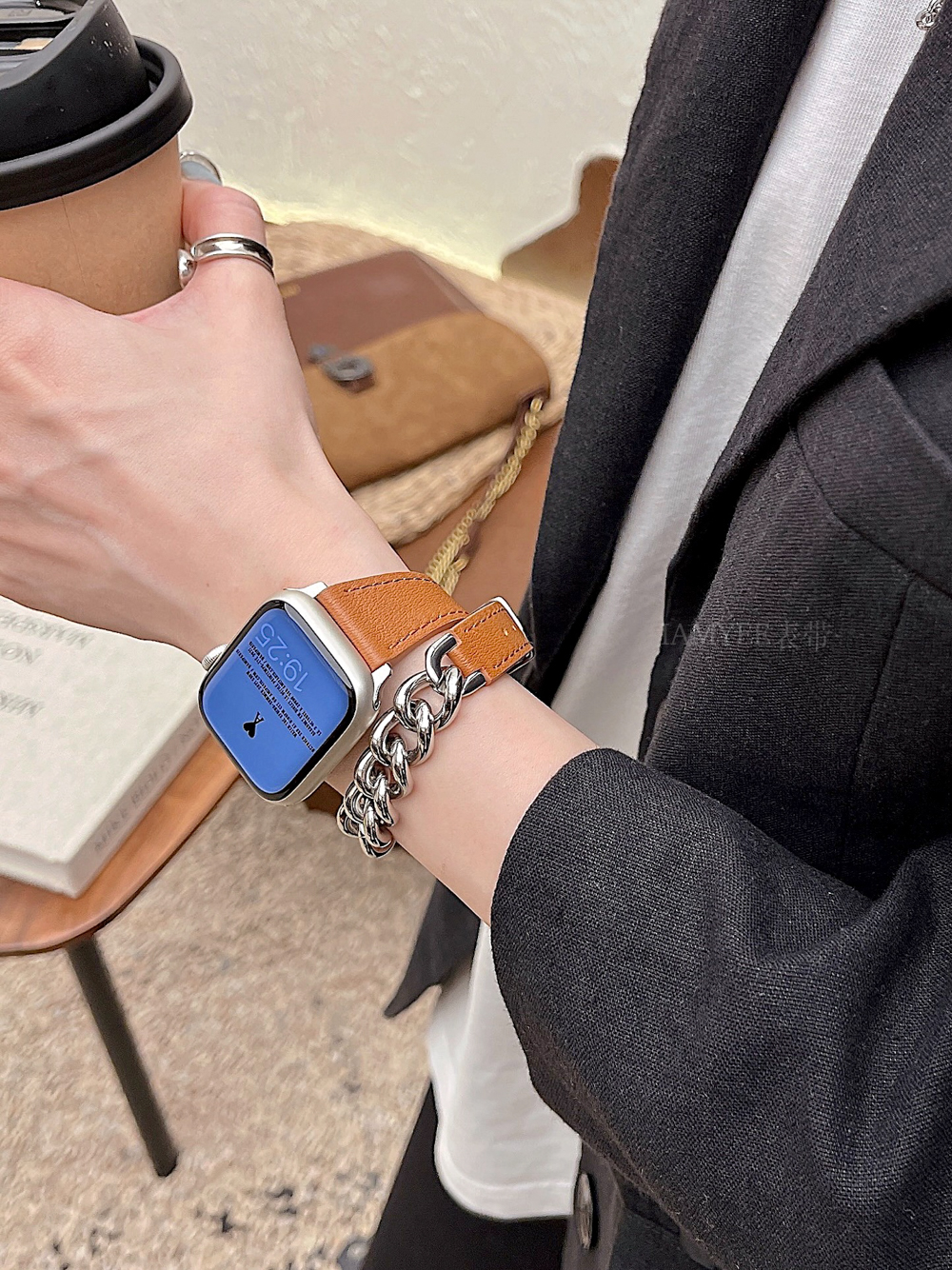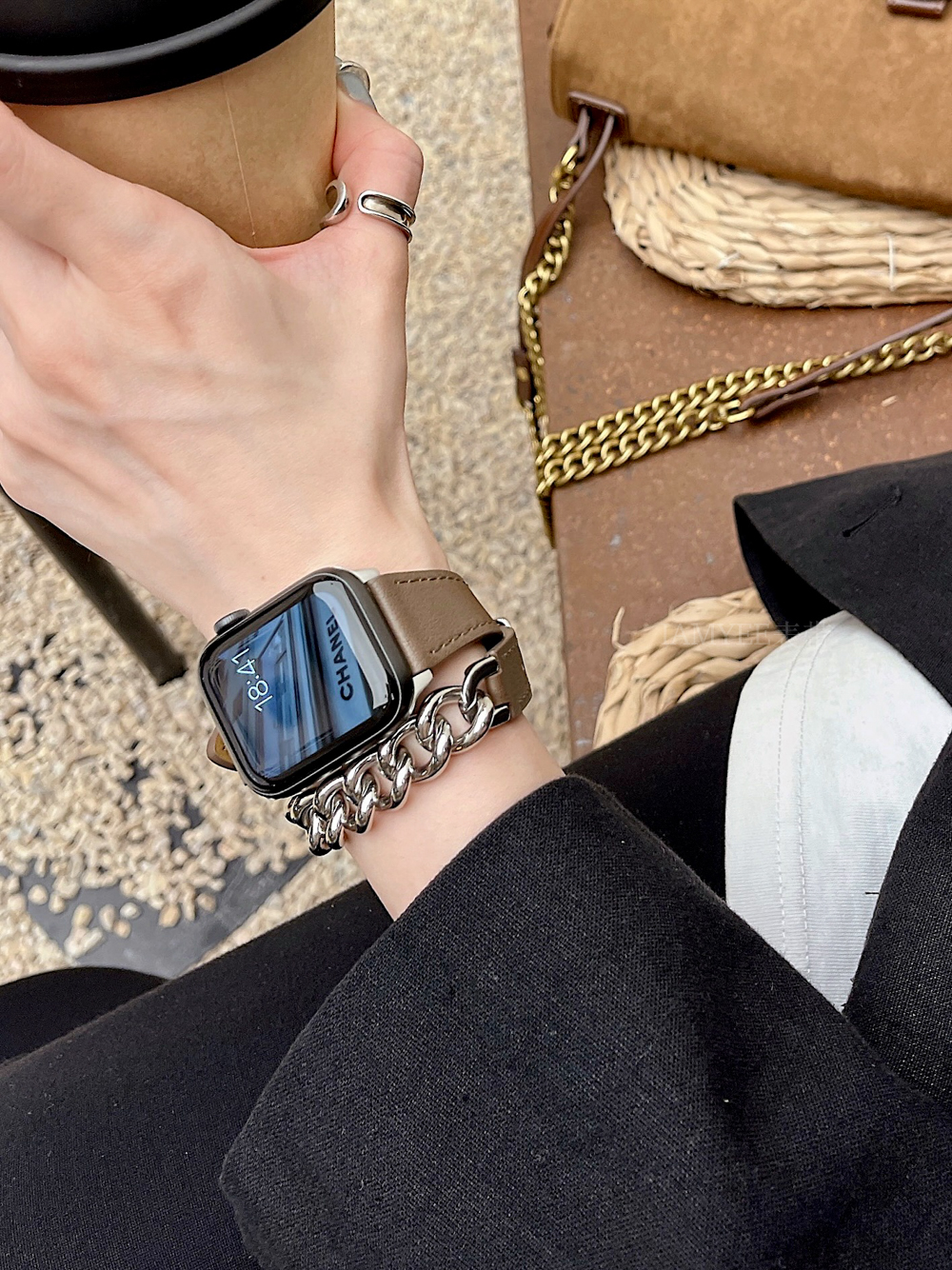 Small waist leather high-grade sense stainless steel chain is suitable for Applewatch