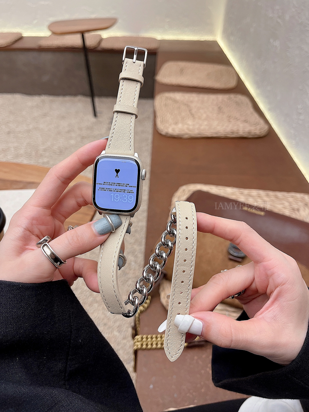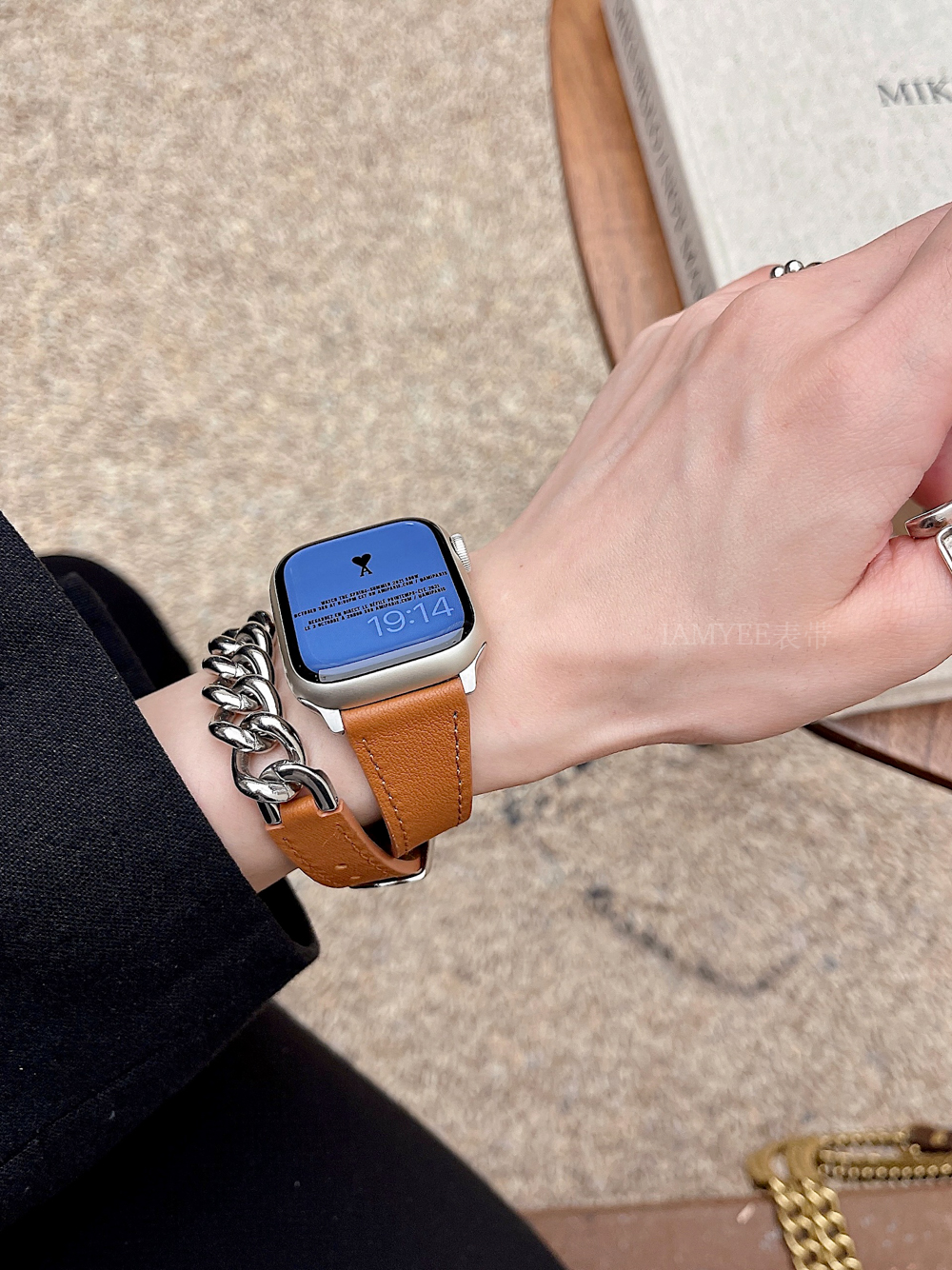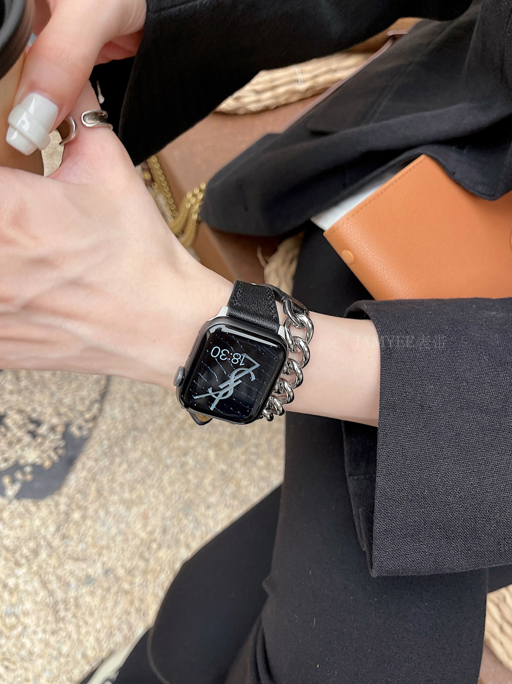 Small waist leather high-grade sense stainless steel chain is suitable for Applewatch