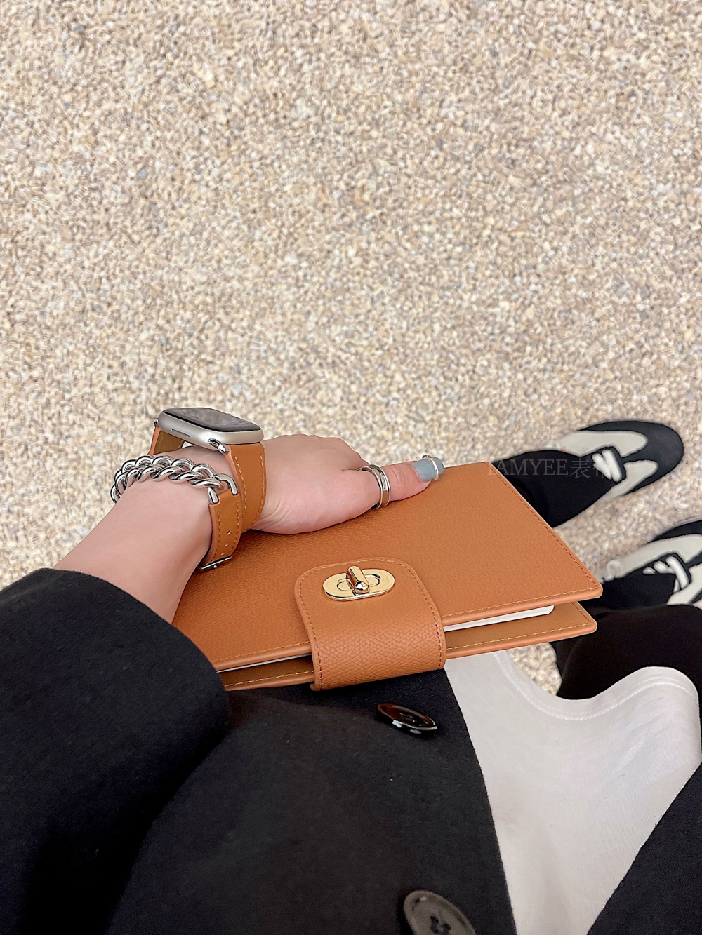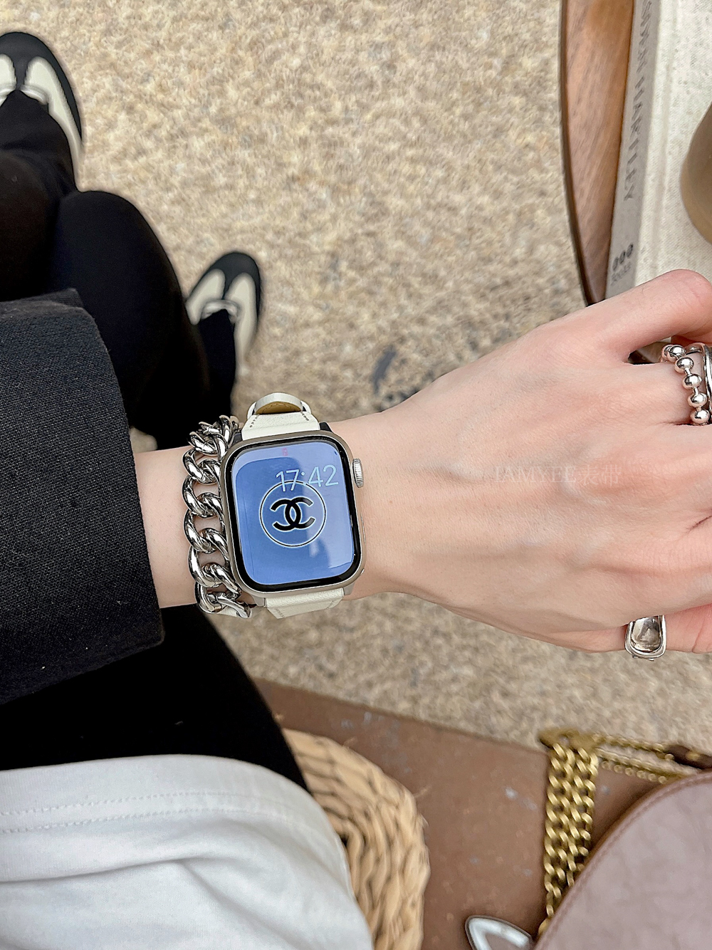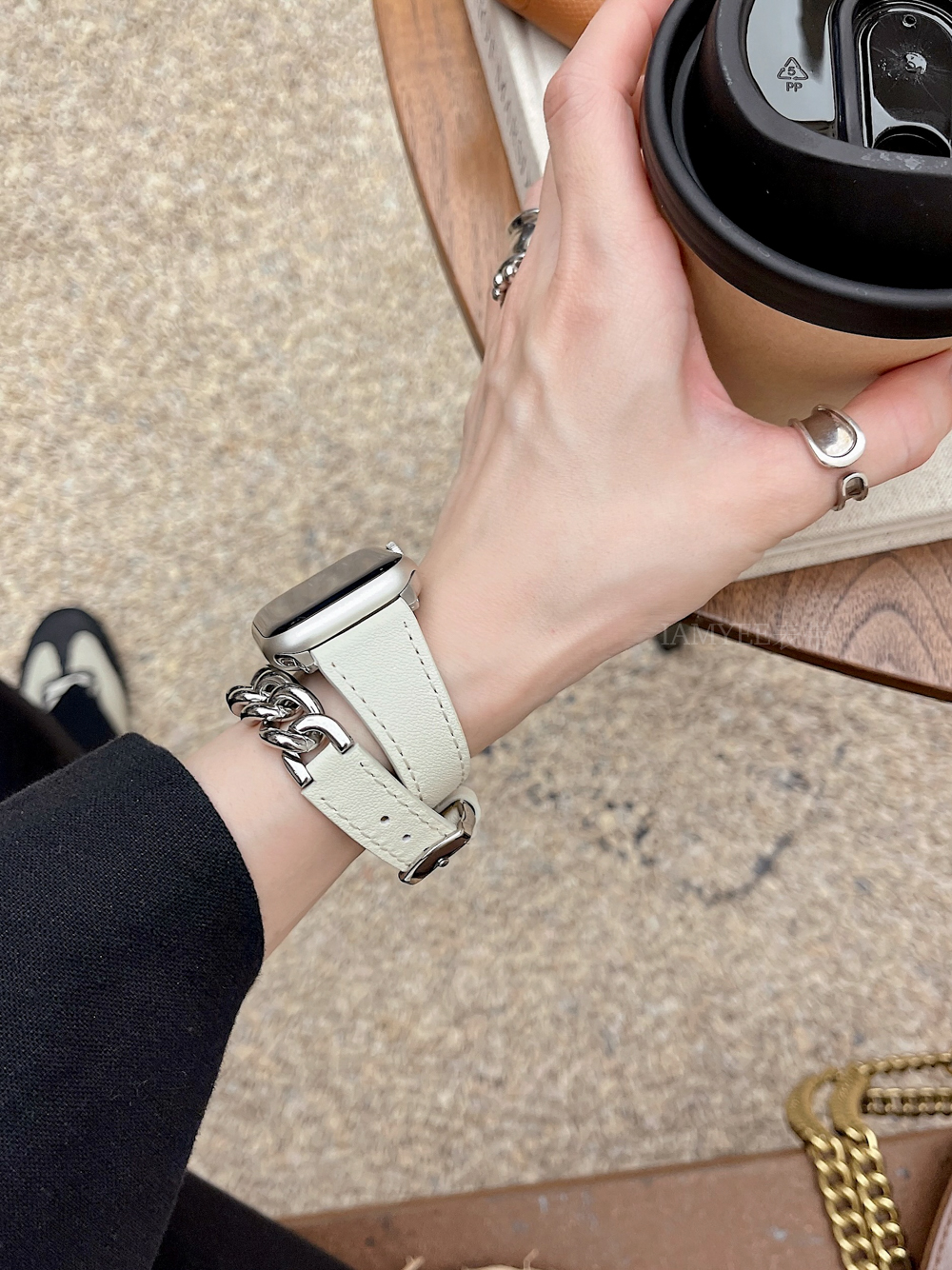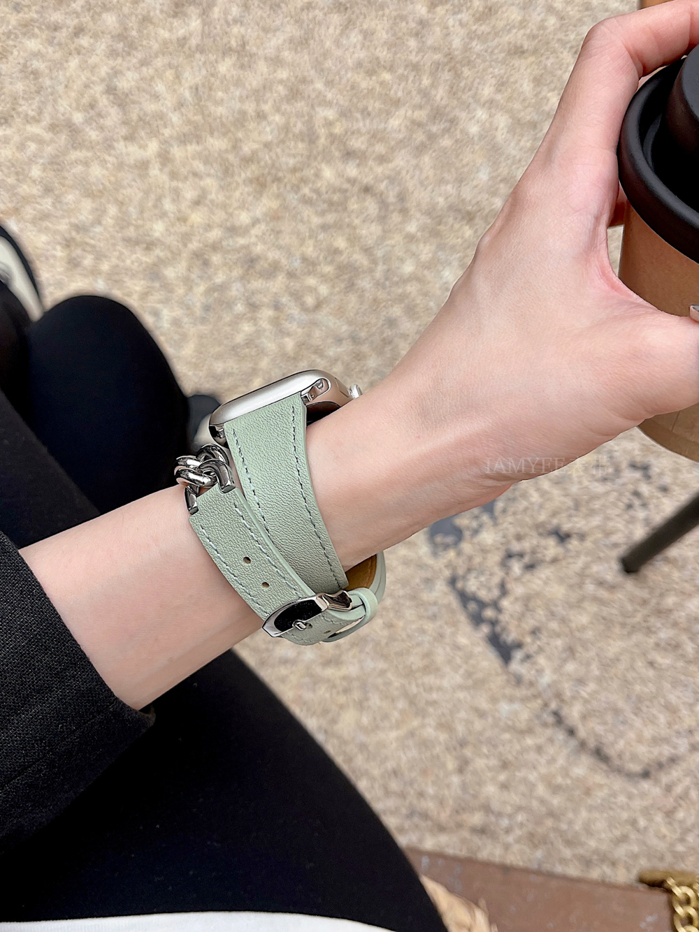 Small waist leather high-grade sense stainless steel chain is suitable for Applewatch