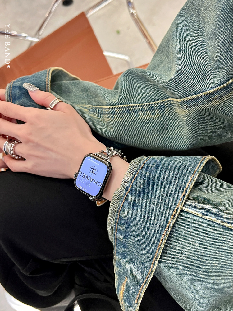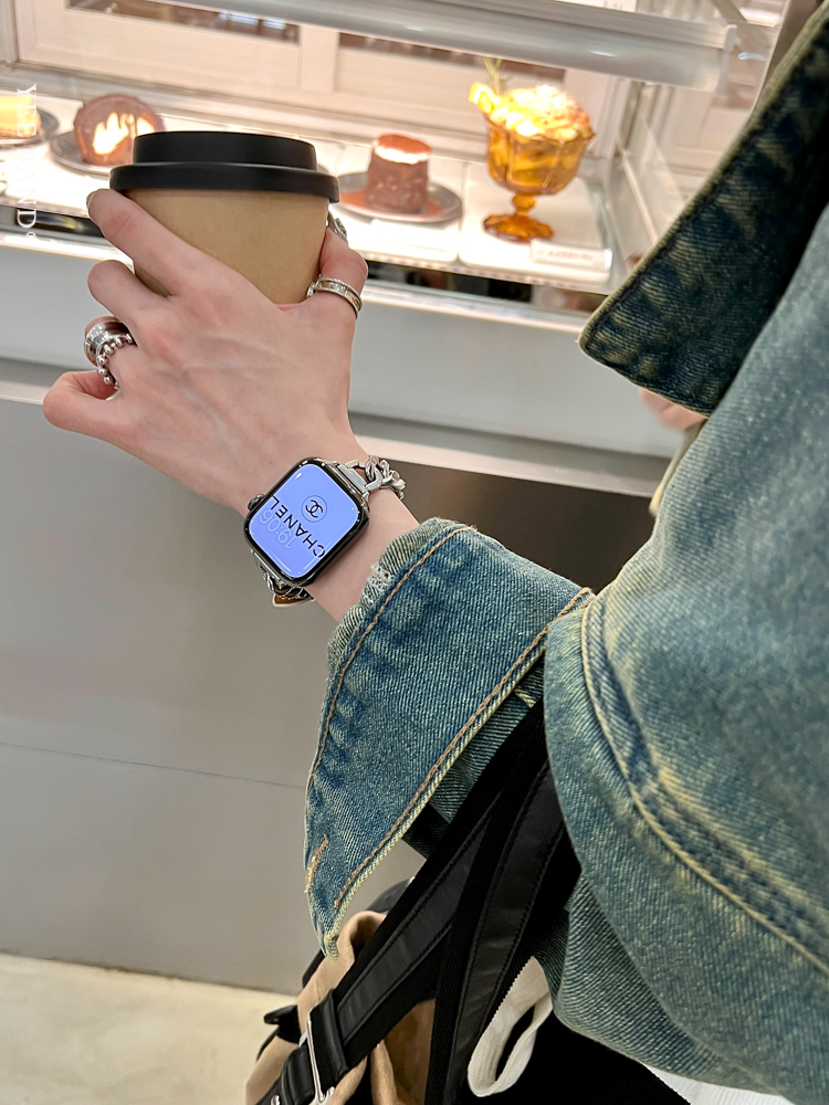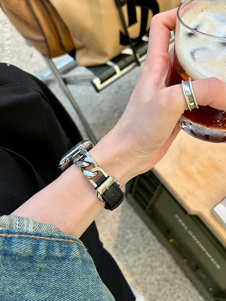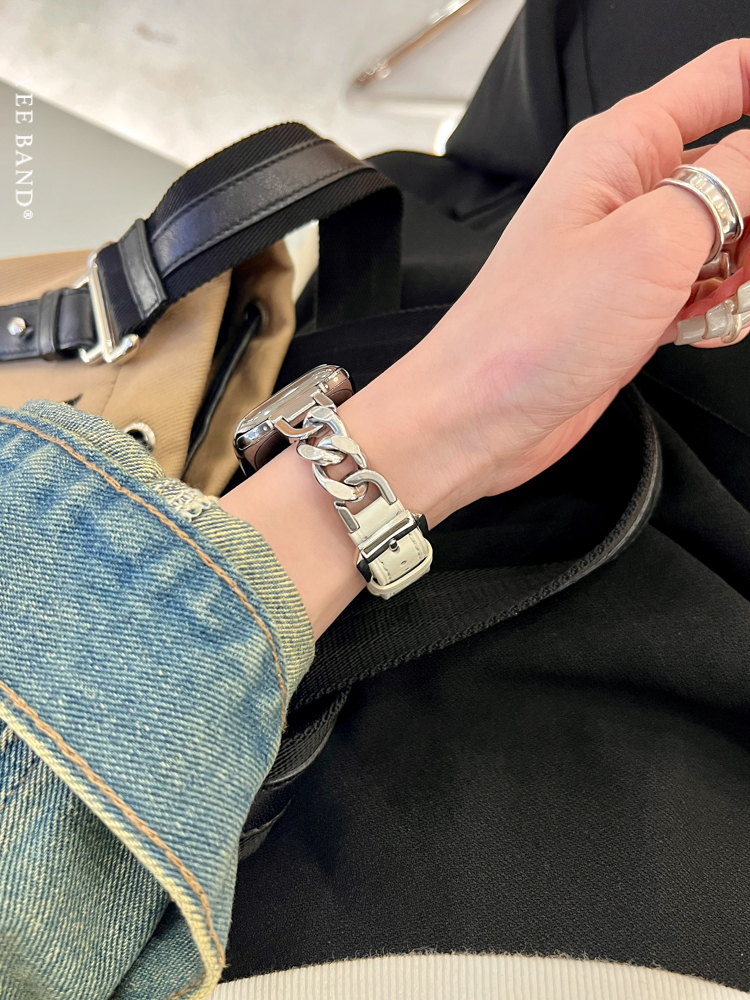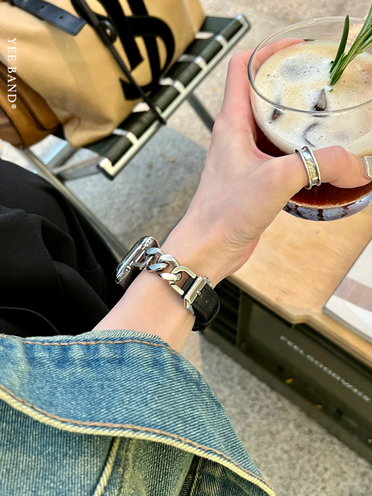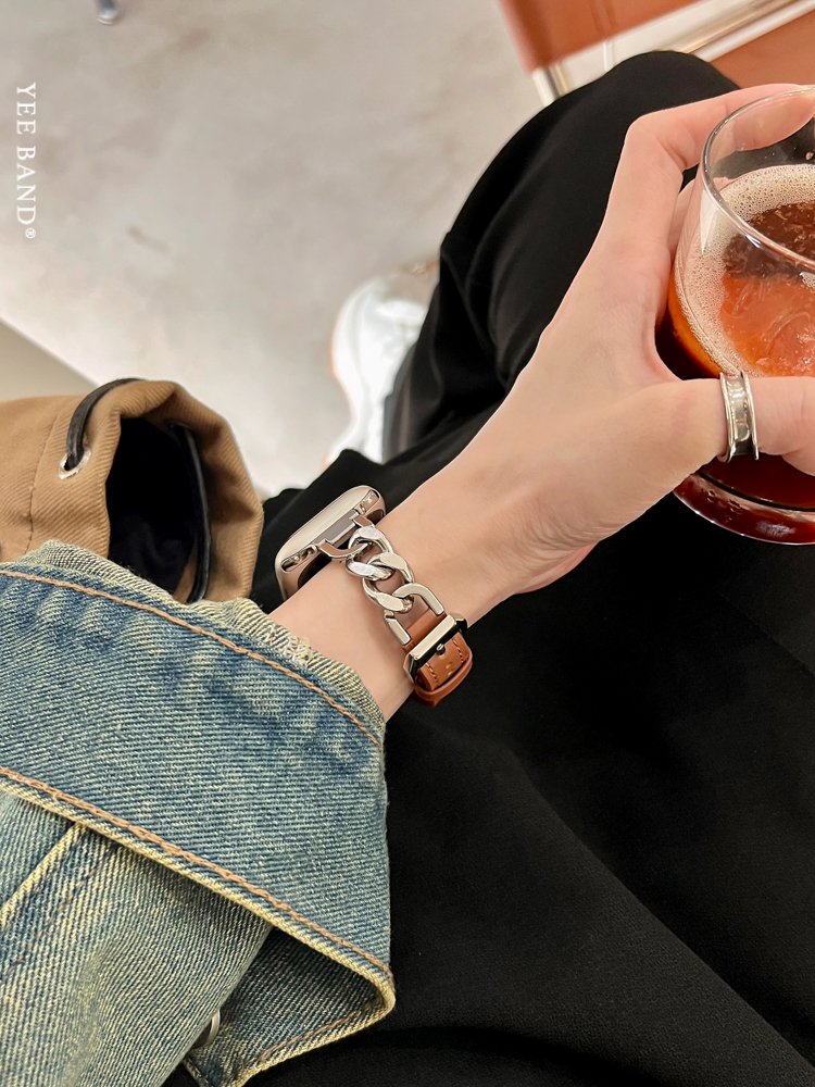 Stainless Steel 316 Chain Patchwork Leather Strap for Apple Watch