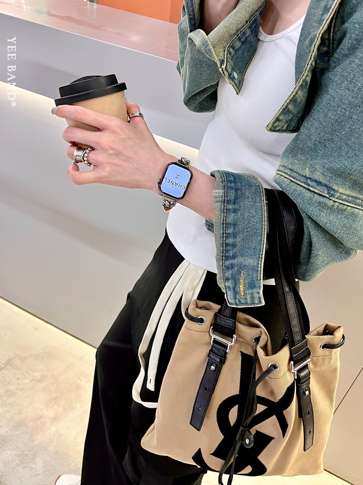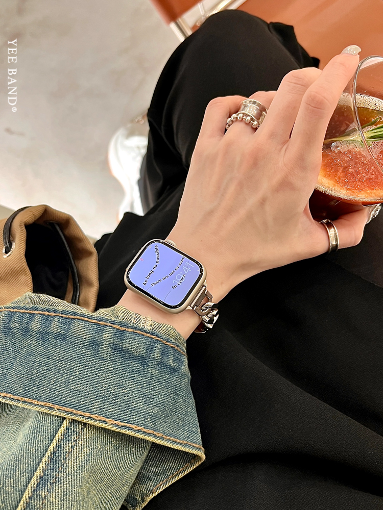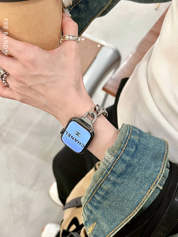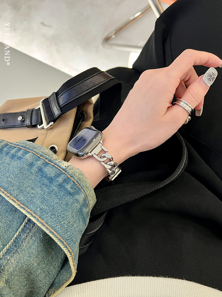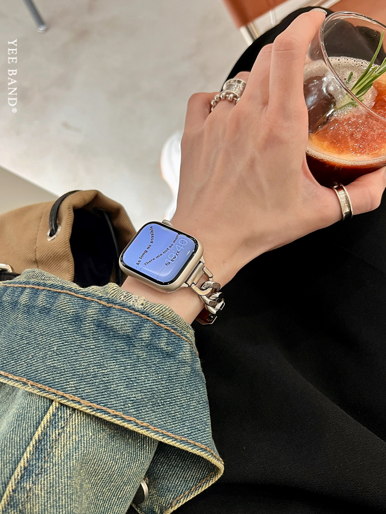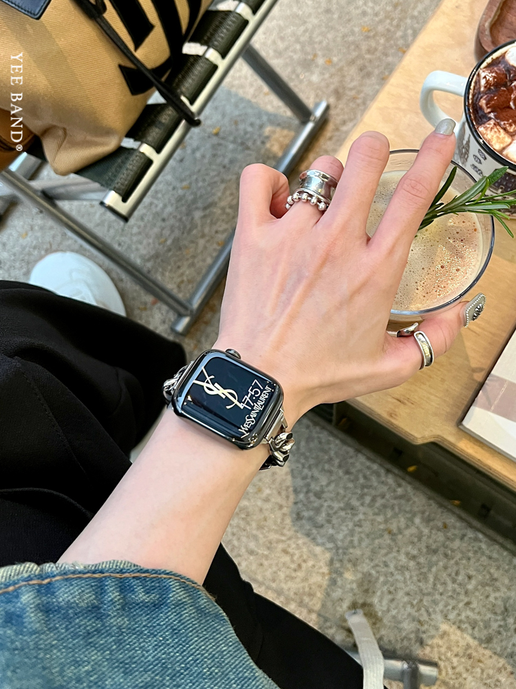 Stainless Steel 316 Chain Patchwork Leather Strap for Apple Watch