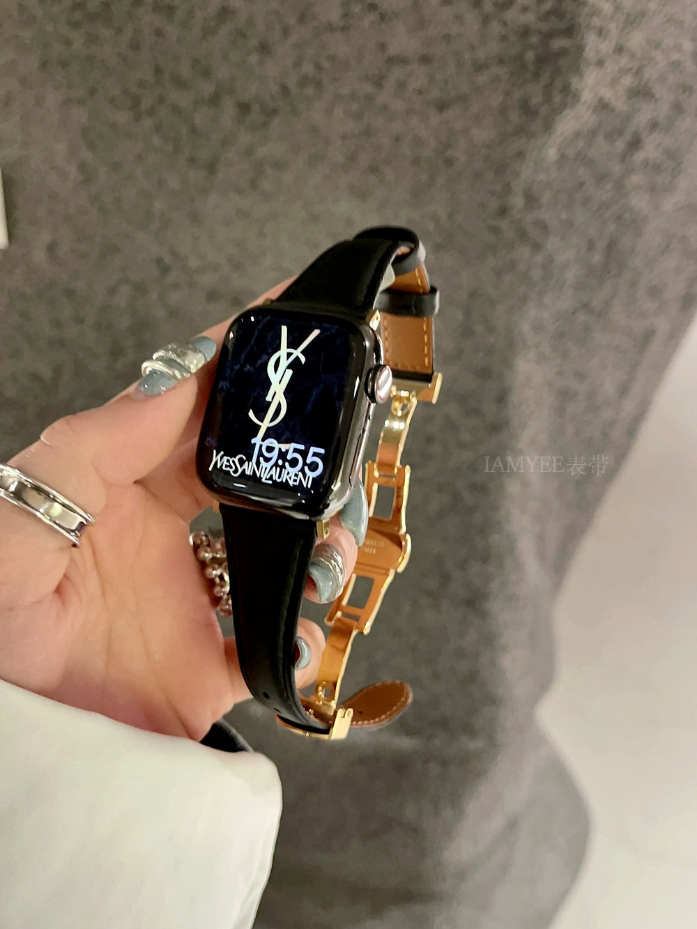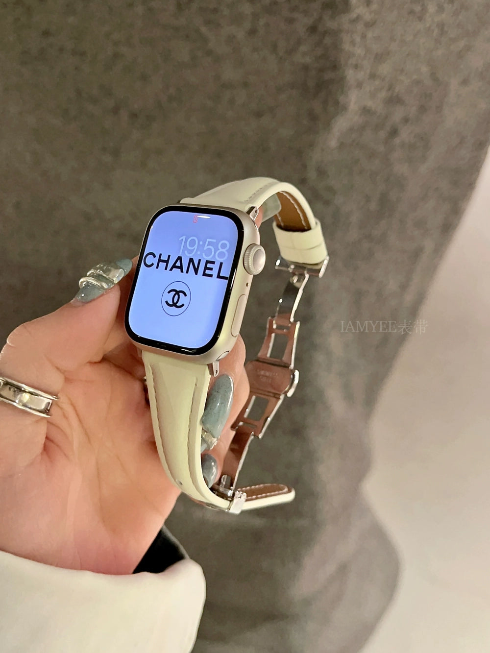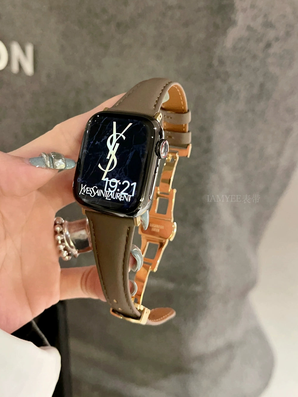 Plain Butterfly Clasp Leather Premium Strap for Applewatch